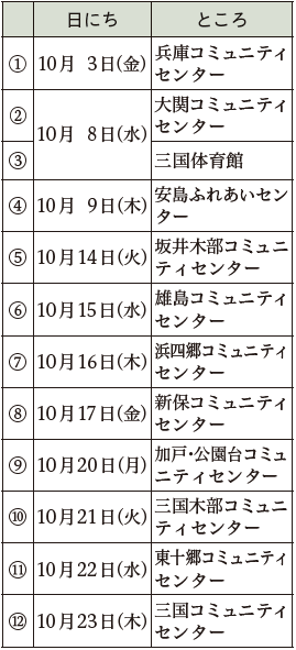 日時:10月6日(月)、9日(木)11月10日(月)、13日(木)、12月1日(月)、4日(木) 9:30~11:30