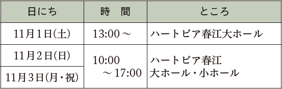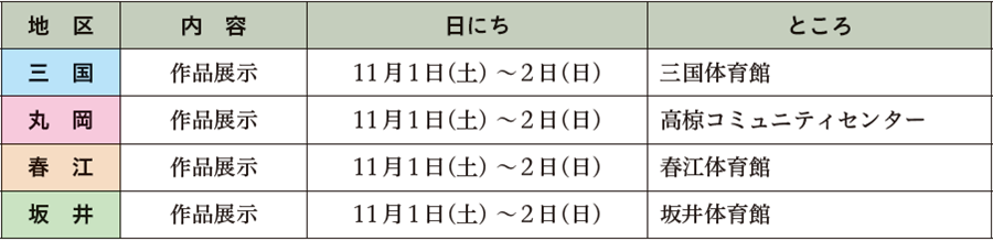 ▽各地区の会場の日程 11月1日(土)~2日(日)