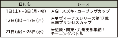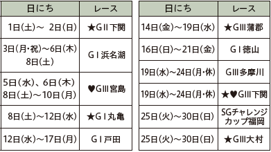 上記以外の開催情報については、ボートレース三国ホームページをご覧ください。