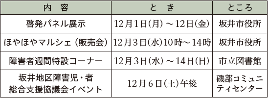 ■12月3日(水)~9日(火)の障害者週間に合わせ啓発イベントを開催します