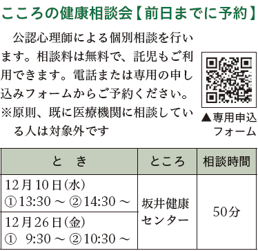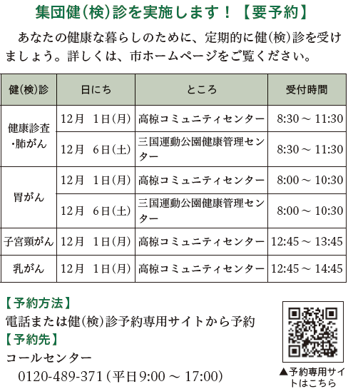 健康 健康カレンダーミニ 12月のご案内 7/14 前の記事 次の記事 発行日 : 2025年11月26日 自治体名 : 福井県坂井市 広報紙名 : 広報さかい お知らせ版 2025年11月号 問合せ:健康増進課 【電話】50-3067【FAX】66-2940 Tweet シェアする 回避しよう!暮しのトラブル 消費者センター情報 本のある生活。