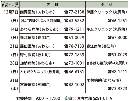 くらし 休日診療 13/14 前の記事 次の記事 発行日 : 2025年11月26日 自治体名 : 福井県坂井市 広報紙名 : 広報さかい お知らせ版 2025年11月号 受診前に、各医療機関にお問い合わせください。 Tweet シェアする 12月 相談日 その他のお知らせ(広報さかい お知らせ版 2025年11月号)