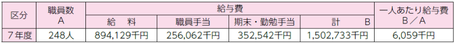 令和7年4月1日現在の職員の平均年齢、平均給与月額などの状況は、次のとおりです。