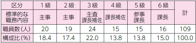 令和7年4月1日現在の一般行政職の級別職員数の状況は、次のとおりです。