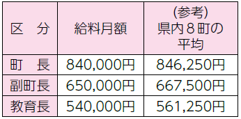 令和7年4月1日現在の特別職の給料などの状況は、次のとおりです。