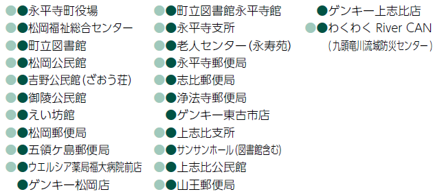 クーリングシェルターのうち、町役場本庁舎、各支所、図書館などの公共施設などを一時的に休憩できる「涼み処(すずみどころ)」として解放します。