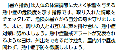 熱中症になると熱によるダメージと脱水による組織へのダメージがあります。一時的なダメージではなく、後遺症として生涯残りうることもあります。熱中症になることで、重症で寝たきりになったり、白内障のリスク(金沢医科大学の研究報告)になることもわかってきています。熱中症は予防が大切です。