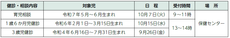 上記以降の日程は町ホームページまたは各種受診券に同封の案内文をご覧ください
