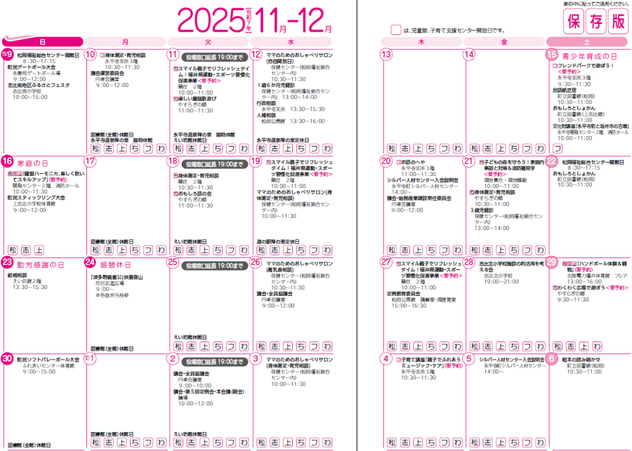- 広報紙名 : 広報永平寺 令和7年11月号