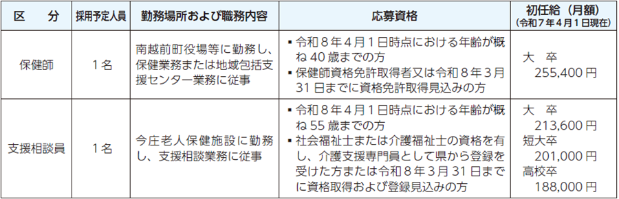 申込み・問合せ:〒919-0292南越前町東大道29-1 総務課