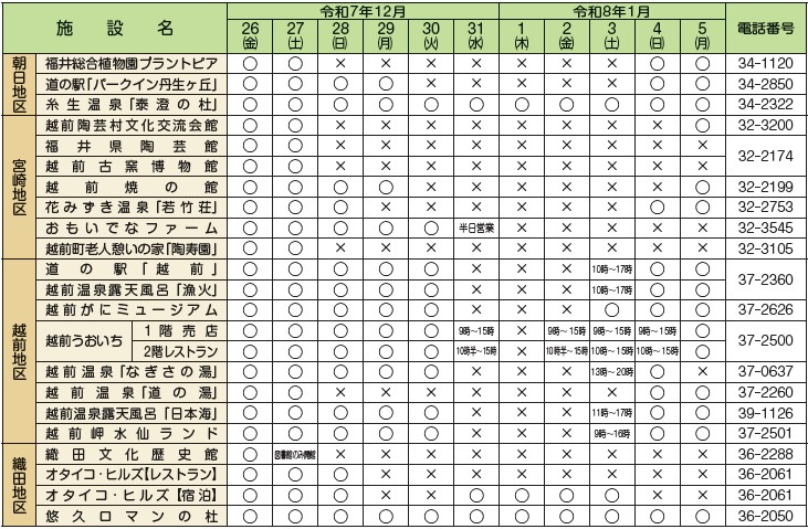 くらし 年末年始の施設営業日のご案内 4/31 前の記事 次の記事 発行日 : 2025年12月01日 自治体名 : 福井県越前町 広報紙名 : 広報えちぜん 令和7年12月号 ※あくまでも予定ですので、変更になる場合がございます。 ※詳しくは各施設へお問合せください。 Tweet シェアする まちの話題をお届けします!ーえちぜんTopicsー(2) 各種証明書のコンビニ交付サービスの一時停止について