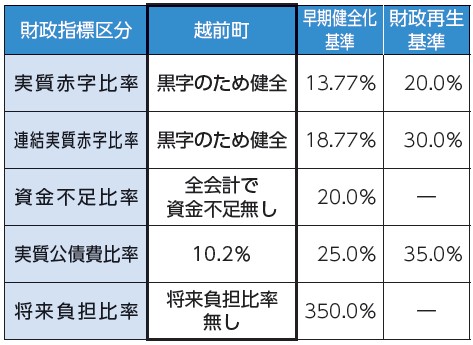 令和6年度決算の越前町の財政指標