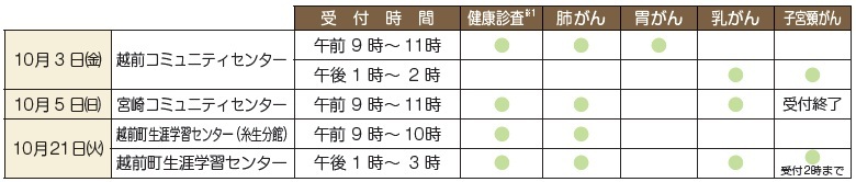 ・第1~4土曜日・祝日 午前9時30分~午後2時 越前町社会福祉センター