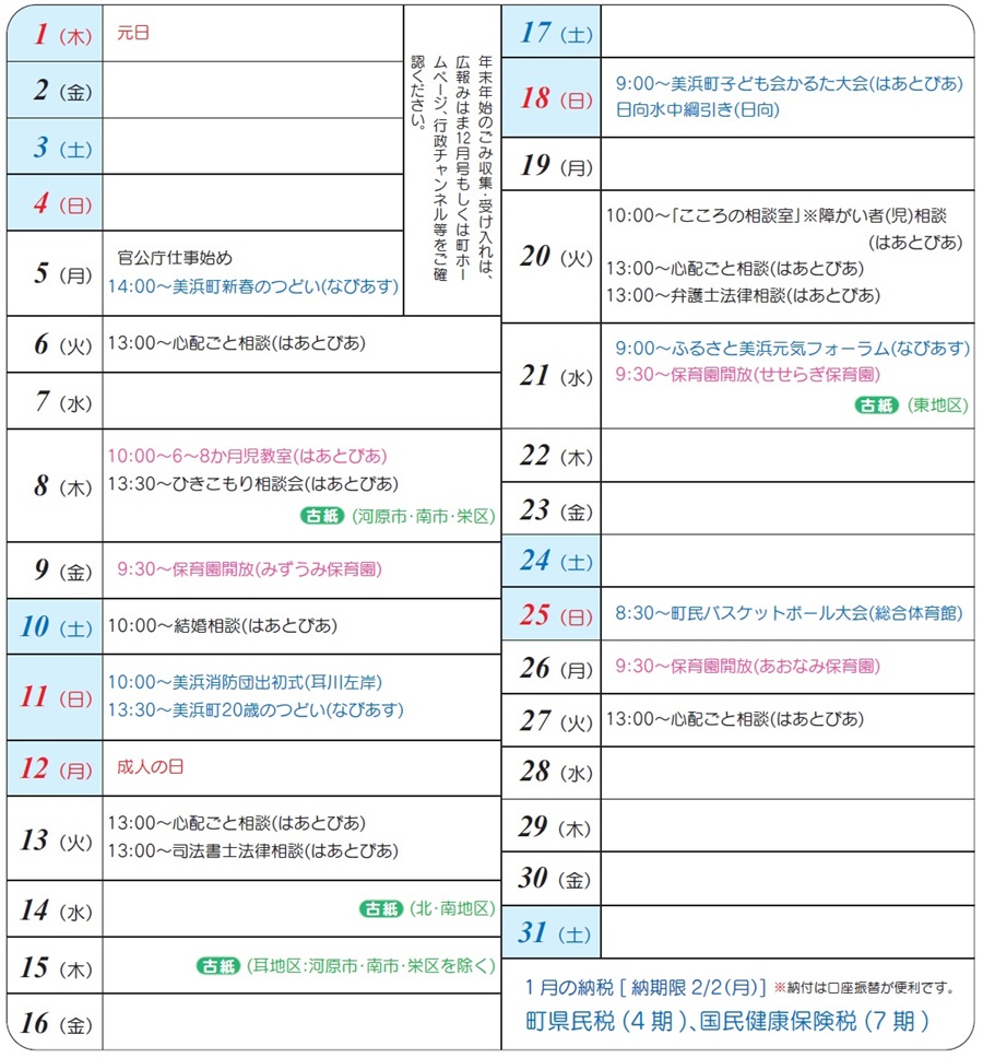 - 広報紙名 : 広報みはま 令和8年1月号 No.660