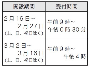 申告相談の受付期間は、2月16日から3月16日の平日のみとなります。受付時間は、次のとおりです。