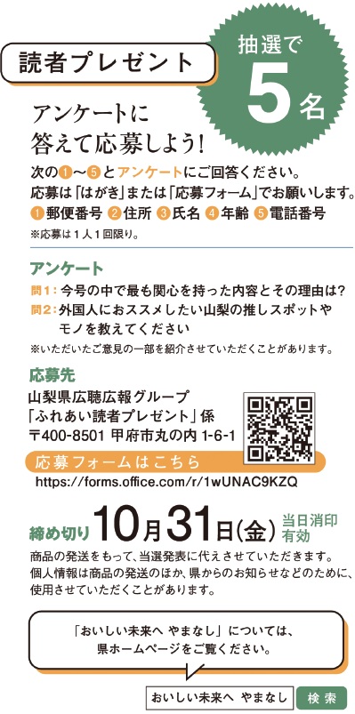 その他 読者プレゼント 12/13 前の記事 次の記事 発行日 : 2025年10月01日 自治体名 : 山梨県 広報紙名 : 山梨県の広報誌ふれあい 特集号 秋 vol.86 Tweet シェアする 戸籍のふりがな届出便乗した詐欺に注意 その他のお知らせ(山梨県の広報誌ふれあい 特集号 秋 vol.86)