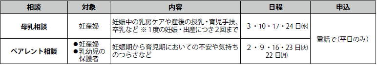 ※特に記載のない場合、会場は、保健センター(健康支援センター内)