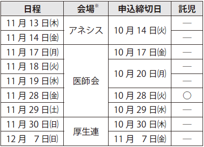 ・荒天時は健診を中止することがあります。市ホームページでご確認ください