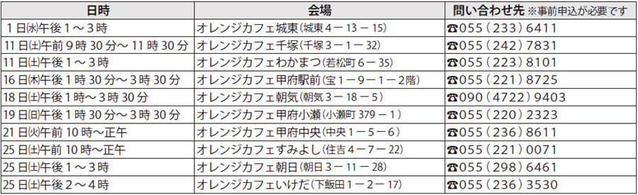 ※飲食費が必要な会場があります。詳細は各オレンジカフェまで