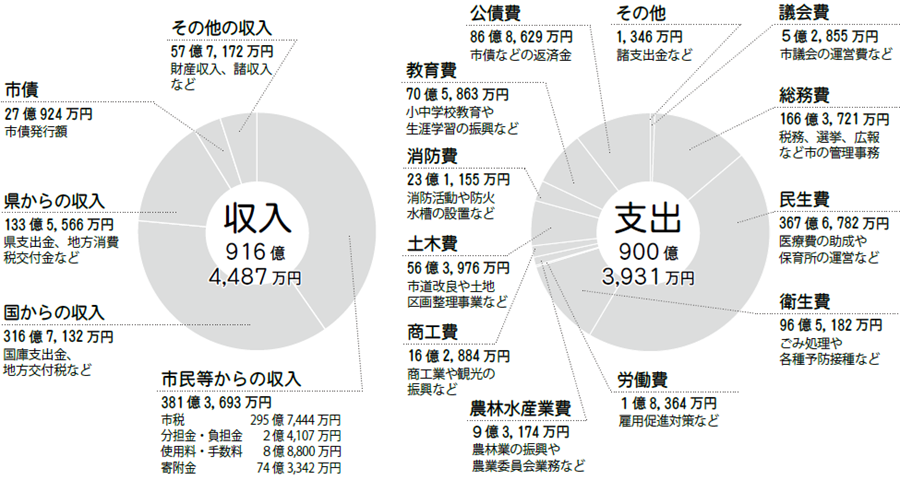 [収入]916億4,487万円ー[支出]900億3,931万円=[差引額]16億556万円(令和5年度:21億8,391万円)