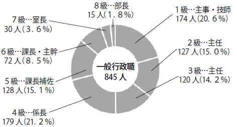 ※職員数は国の定員管理調査に基づき、常勤一般職の数で、臨時または非常勤の職員は除きます