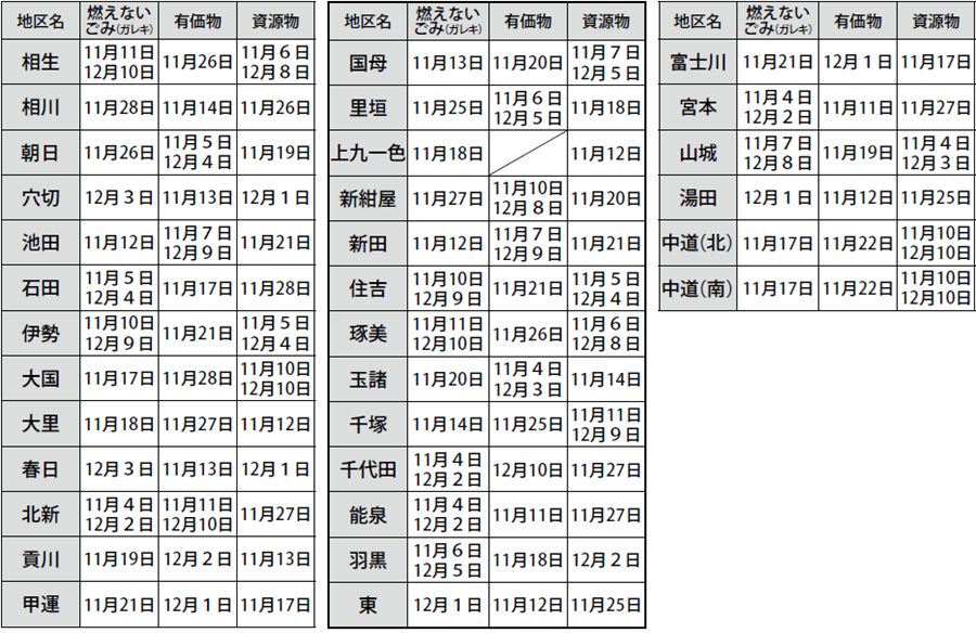 回収時間:午前10時~午後3時(リサイクルプラザは午前9時~午後8時)