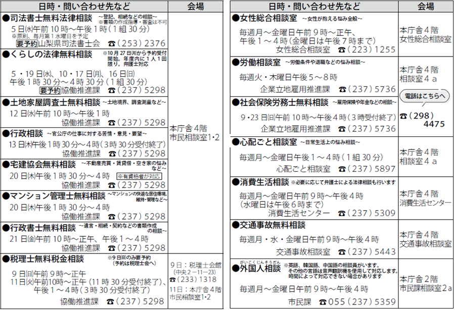 くらし 11月の相談 11/57 前の記事 次の記事 発行日 : 2025年11月01日 自治体名 : 山梨県甲府市 広報紙名 : 広報こうふ No.838 2025年11月1日号 ※祝日は除く Tweet シェアする 有価物などの収集日程表 目指そう!賢い消費者!!~ストップ!悪質商法~
