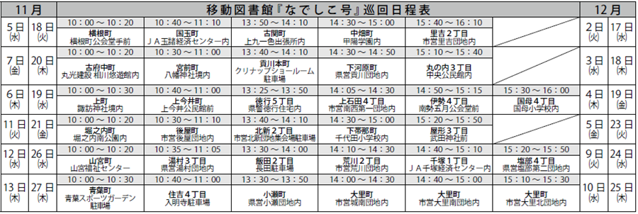 くらし 移動図書館『なでしこ号』巡回日程表 22/57 前の記事 次の記事 発行日 : 2025年11月01日 自治体名 : 山梨県甲府市 広報紙名 : 広報こうふ No.838 2025年11月1日号 Tweet シェアする 施設の情報(2) 初心者対象 楽しく学ぶ!スマホの使い方入門