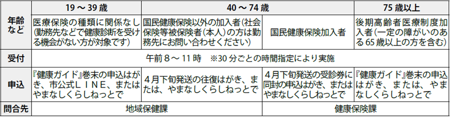19~39歳の方、がん検診、社会保険加入の方、生活保護受給者等【電話】055-237-2505