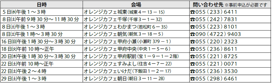 ※飲食費が必要な会場があります。詳細は各オレンジカフェまで