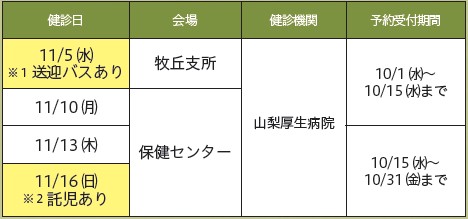 ・送迎希望者の健診受付時間は、こちらで調整します。