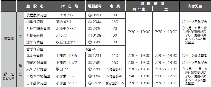 ※岩手保育園への入園を希望する人は、お問い合わせください。