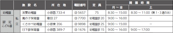 ※上記幼稚園・認定こども園は、保育園などと説明会の日程や申し込み方法などが異なります。入園を希望する保護者は、詳細を各施設にお問い合わせください。