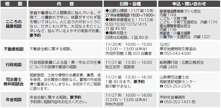 くらし 各種相談 7/46 前の記事 次の記事 発行日 : 2025年10月23日 自治体名 : 山梨県山梨市 広報紙名 : 広報やまなし 2025年11月号 ひとりで悩まない…! Tweet シェアする 歯の健康特集(2) みんなの掲示板(2)~11月のイベント・募集のお知らせ~