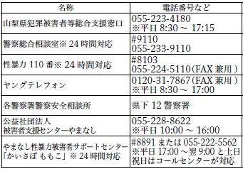 県警察や関係機関では犯罪被害者やそのご家族・ご遺族からの相談窓口を設置しています。