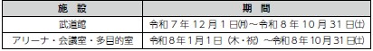 利用者へのお願い:工事期間中は、多くの方にご不便をおかけしますが、ご理解ご協力をお願いします。なお、トレーニングルームおよび軽スポーツ広場は工事が行われないため利用できます。利用受付も、これまでどおり体育館で行えます。