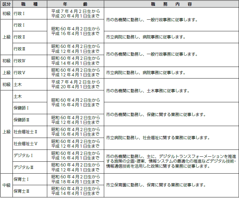 ※学歴および資格などの要件は市ホームページまたは「試験案内」をご覧ください。