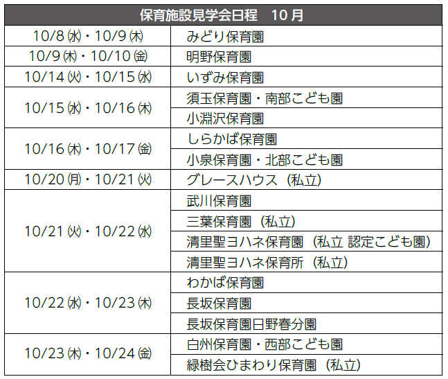 ※やむを得ず指定見学日に参加できない場合は、直接施設へ問い合わせをしてください。