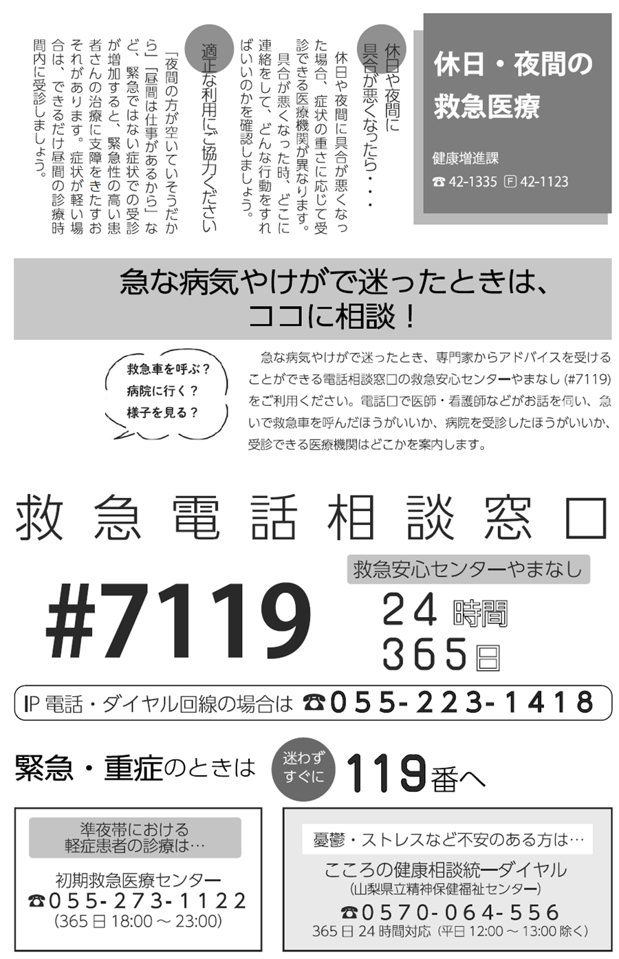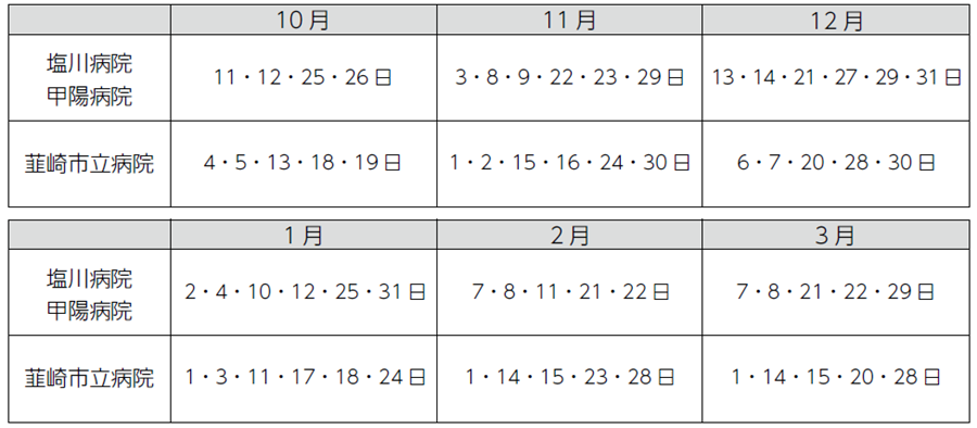 対応する病院は平日夜間、休日、祝日で当番が決まっています。