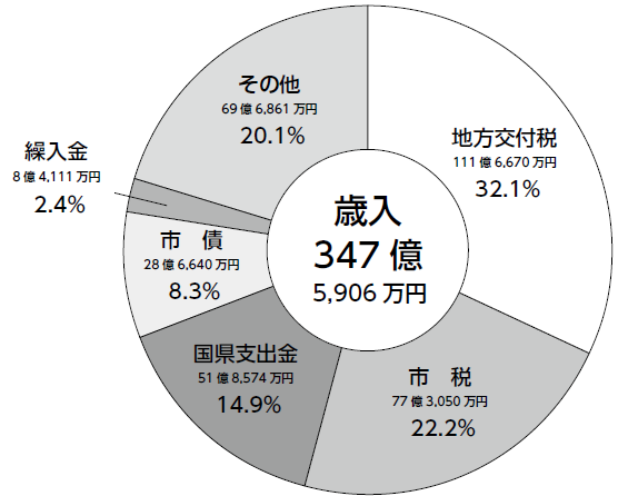 市では、市民の皆さんが納めた税金や国・県からの支出金、市債などを財源としてさまざまな事業を実施しています。