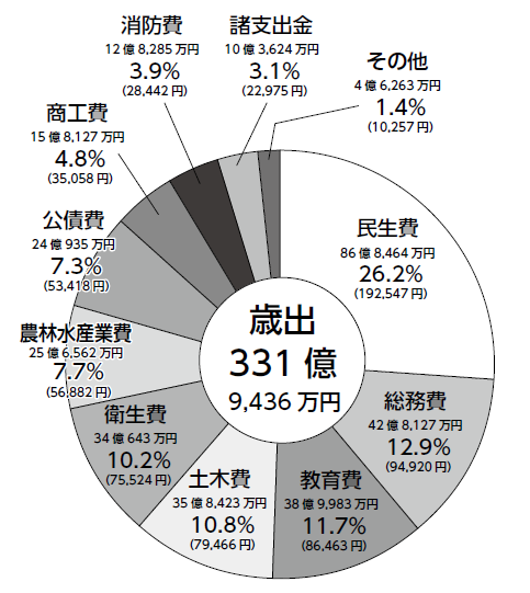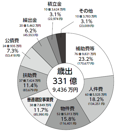 ■令和6年度決算一般会計歳出合計は331億9,436万円