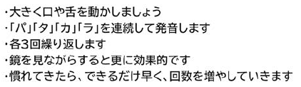 お口の中を清潔に保つとともに、口や舌の運動をすることは、健康維持のために良い習慣です。日常生活の中に積極的に取り入れてください。