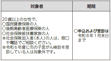 ※健診機関で受診するには、申請受付後に発行される「子宮頸がん検診受診票」または「子宮頸がん検診無料クーポン券(対象:年度末年齢21歳)」が必要です。