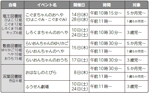 内容:各図書館に問い合わせください。