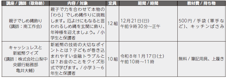受講料:無料(教材費実費、受講決定後のキャンセルは教材費を負担していただく場合があります)