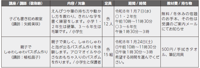 1フォームにつき子ども1人の申し込みです(重複応募は無効)。応募多数の場合は抽選とし、結果は当選者のみ入力時のメールアドレスに送信します。
