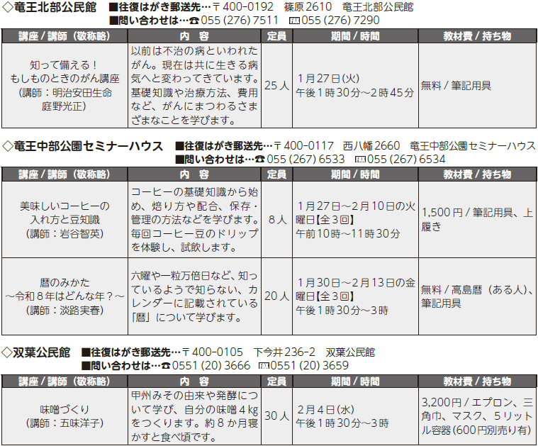 講座 公民館ふれあい講座 31/45 前の記事 次の記事 発行日 : 2026年01月01日 自治体名 : 山梨県甲斐市 広報紙名 : 広報甲斐 令和8年1月号 Tweet シェアする [情報Clips]イベント 公民館子どもふれあい講座