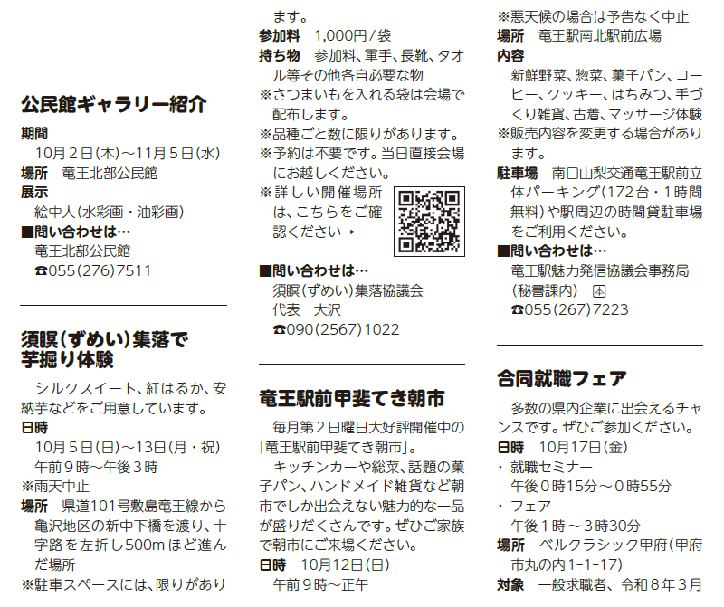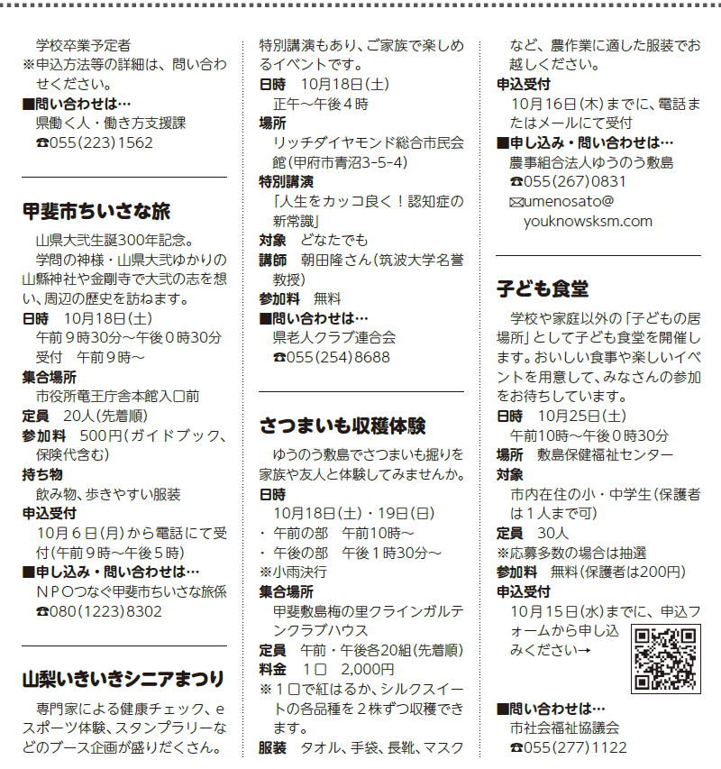 イベント [情報Clips]イベント(1) 28/42 前の記事 次の記事 発行日 : 2025年10月01日 自治体名 : 山梨県甲斐市 広報紙名 : 広報甲斐 令和7年10月号 Tweet シェアする 公民館ふれあい講座 公民館子どもふれあい講座