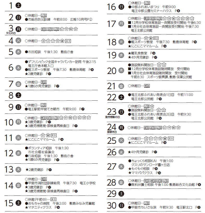 くらし 11月情報カレンダー 37/41 前の記事 次の記事 発行日 : 2025年11月01日 自治体名 : 山梨県甲斐市 広報紙名 : 広報甲斐 令和7年11月号 ページの見方:黒丸に白字(例…黒丸P2)は裏表紙から数えたページ番号。白丸に黒字(例…白丸P2)は、表紙から数えたページ番号です 問い合わせ: 竜王庁舎【電話】055-276-2111 敷島庁舎【電話】055-277-3111 双葉庁舎【電話】0551-28-2211 Tweet シェアする せん定枝粉砕処理 甲斐市の人口