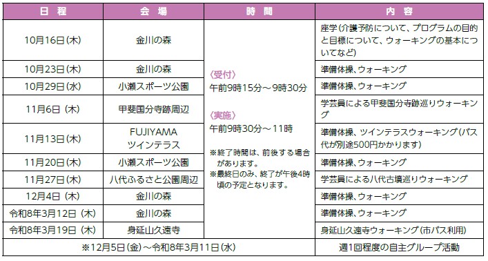 対象:原則65歳以上の市民で、医師から運動を禁止されていない方、また自主グループ活動も含めほぼ全日程参加できる方